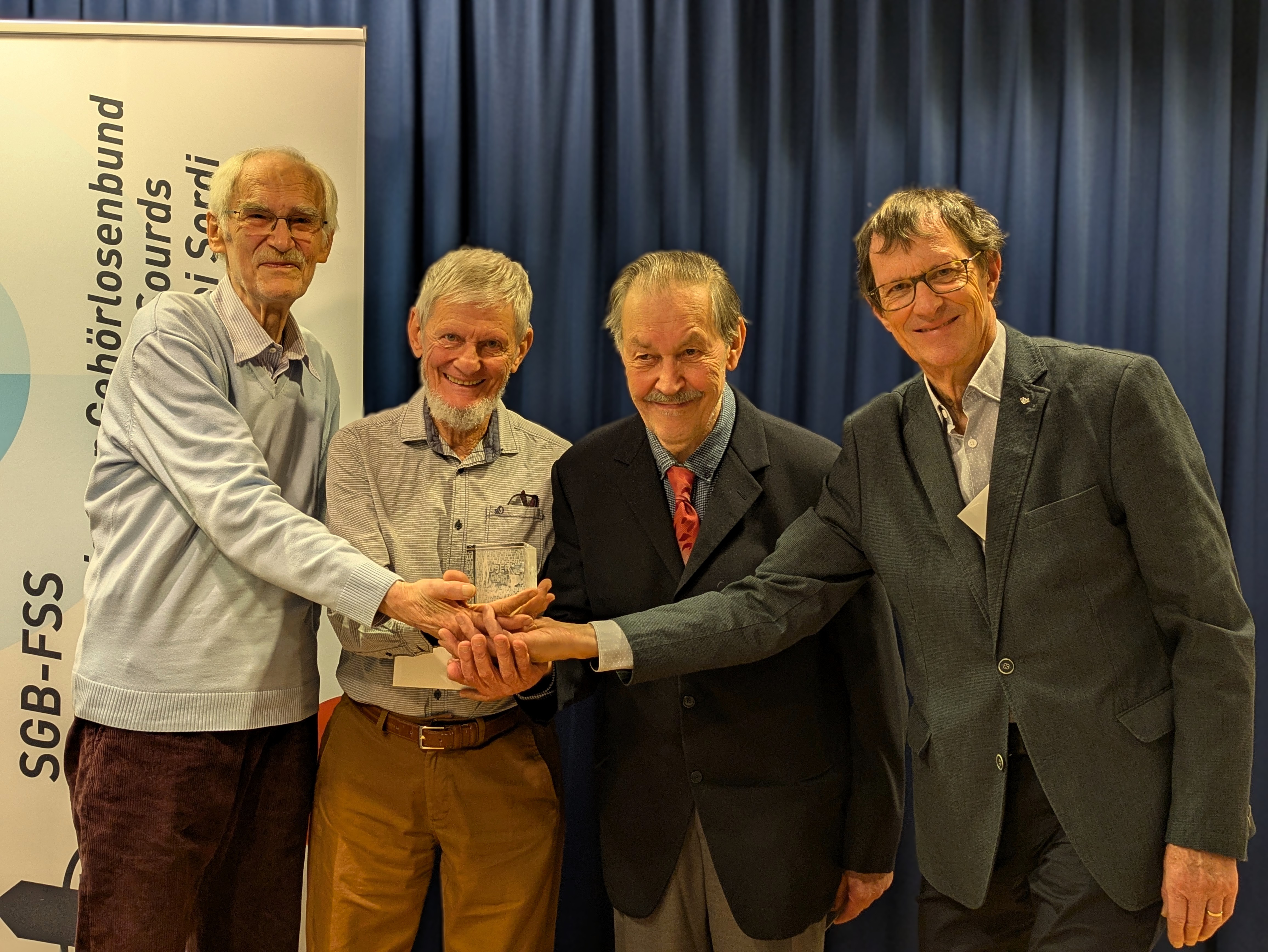 Viele Jahre lang haben sich Andreas Willi, Christoph Künzler, Peter Matter (†), Paul von Moos und Sandro de Giorgi unermüdlich für mehr Barrierefreiheit und bessere Zugänglichkeit im im öffentlichen Verkehr und öffentlichen Raum eingesetzt – mit dem Ziel, dass gehörlose und hörbehinderte Menschen sich sicher, selbstbestimmt und gleichberechtigt bewegen können.